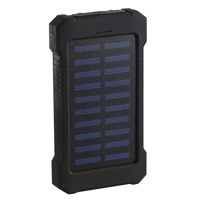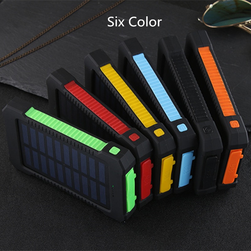 For Smartphone with LED Light Solar Power Bank Waterproof 20000mAh Charger 2 USB Ports External Charger Powerbank